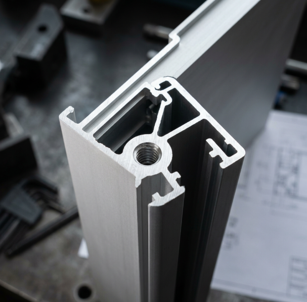 Инженерный ход оказался элегантным: все функциональные пазы — паз задней стенки, лицевой фиксирующий канал, монтажный Т-паз и дренажный желоб — формируются за одну операцию экструзии. Никакой последующей фрезеровки. Сборка каркаса свелась к минимальному набору оборудования: торцовочная пила с диском по алюминию, угловые соединители и заклёпочник. Алюминиевый сплав 6063 формирует на воздухе защитную оксидную плёнку Al₂O₃ — базовую антикоррозионную защиту, работающую без покраски. Анодирование или порошковое покрытие добавляют финальный цвет и декоративность, но не являются условием выживания конструкции. Технология открыла рынок небольшим мастерским без сварочного поста.